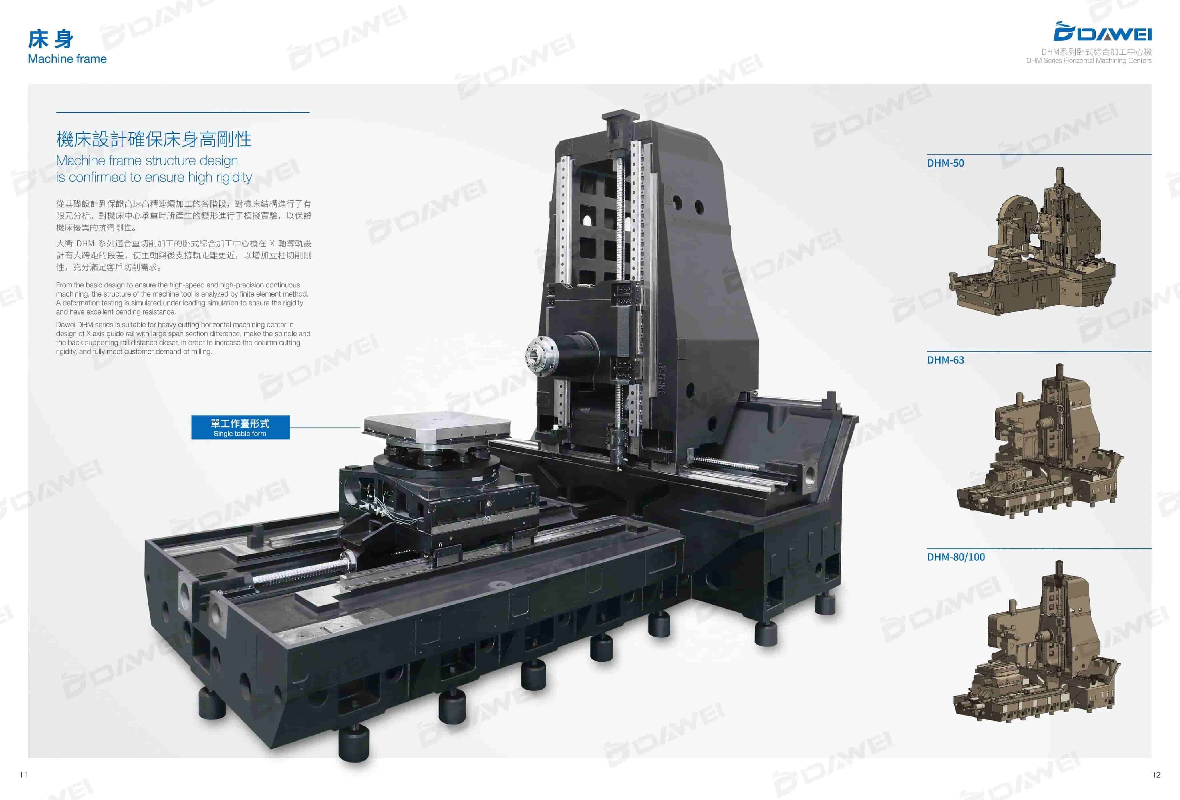大衛DHM系列適合重切削加工的卧式綜合加工中心機在X軸導軌設計有大跨距的段差,使主軸與後支撐軌距離更近,以增加立柱切削剛性,充分滿足客戶切削需求。